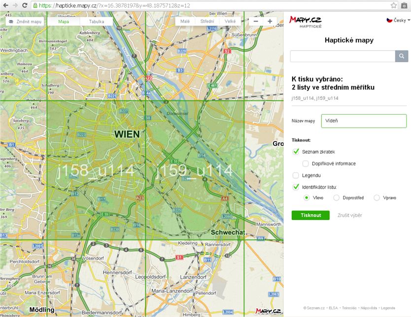 Podstatou projektu Hapticke.mapy.cz je webové rozhraní umožňující automatické generování kartografických podkladů vhodných pro výrobu hmatových map, tedy grafiky reliéfní sledovatelné bez využití zraku. Stávající podoba aplikace je výsledkem společného úsilí univerzitních pracovišť (Teiresiás při Masarykově univerzitě a ELSA při ČVUT v Praze) a společnosti Seznam.cz, která službu provozuje ve své internetové doméně Mapy.cz.